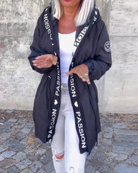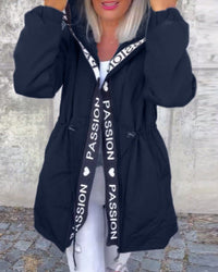 Rudens siltā jaka ar rāvējslēdzēju un kapuci